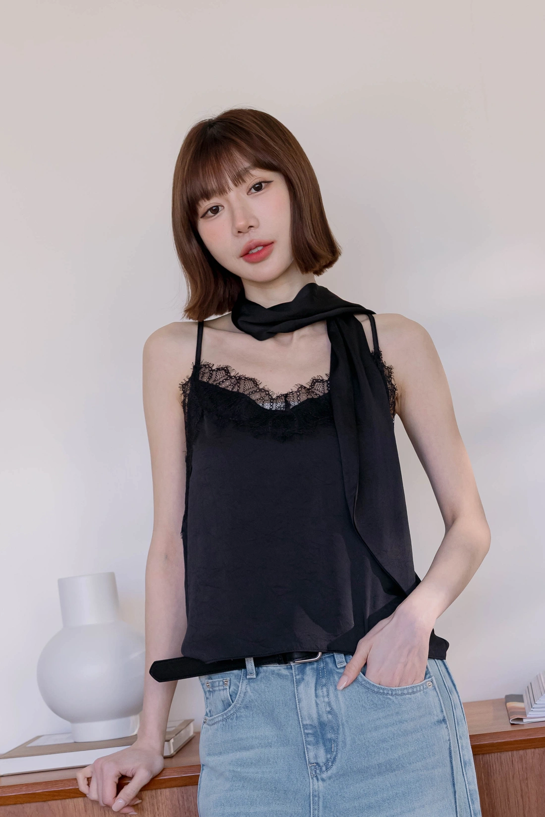附絲巾可自由搭配/可調式肩帶/蕾絲親膚舒適