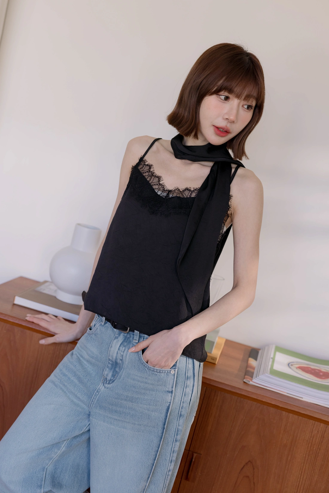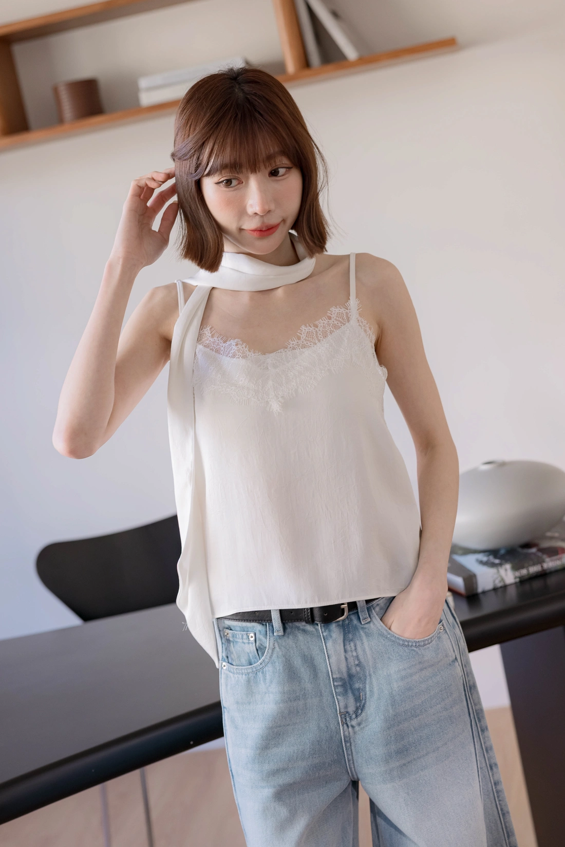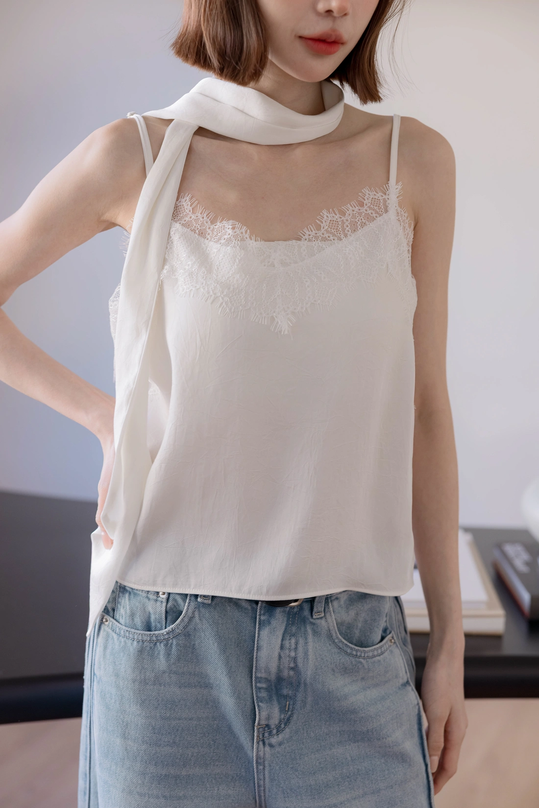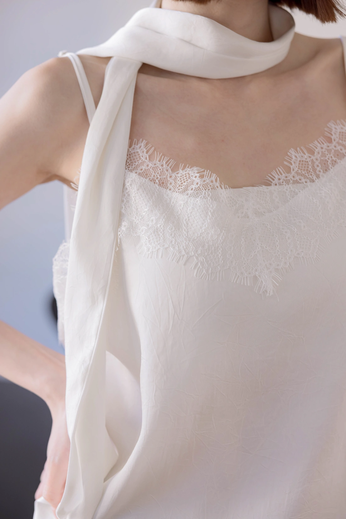 附絲巾可自由搭配/可調式肩帶/蕾絲親膚舒適