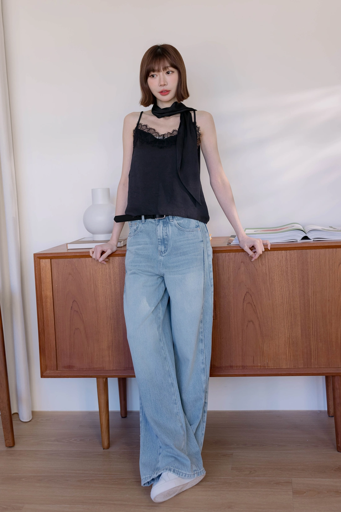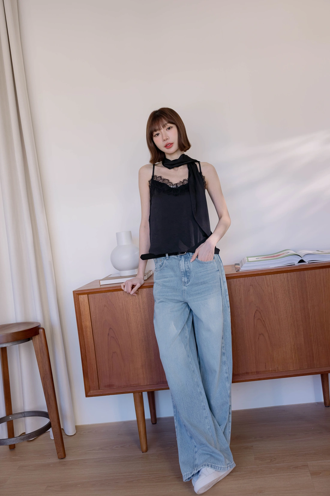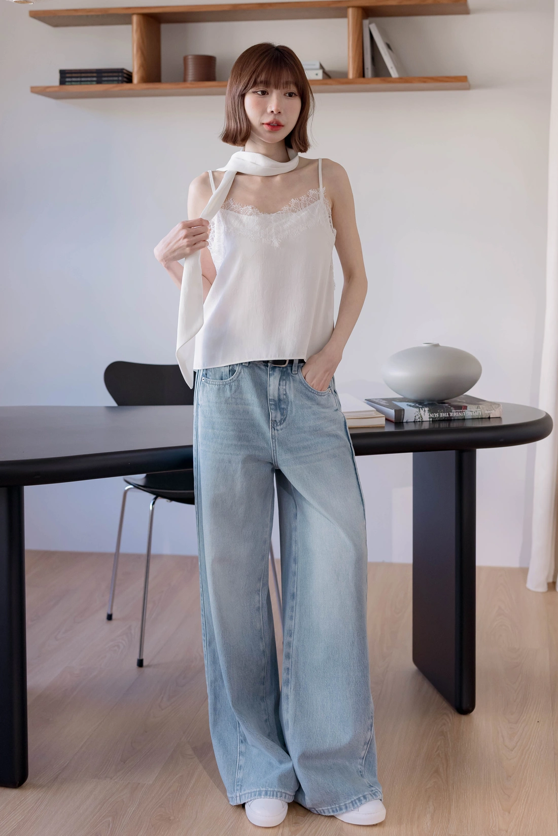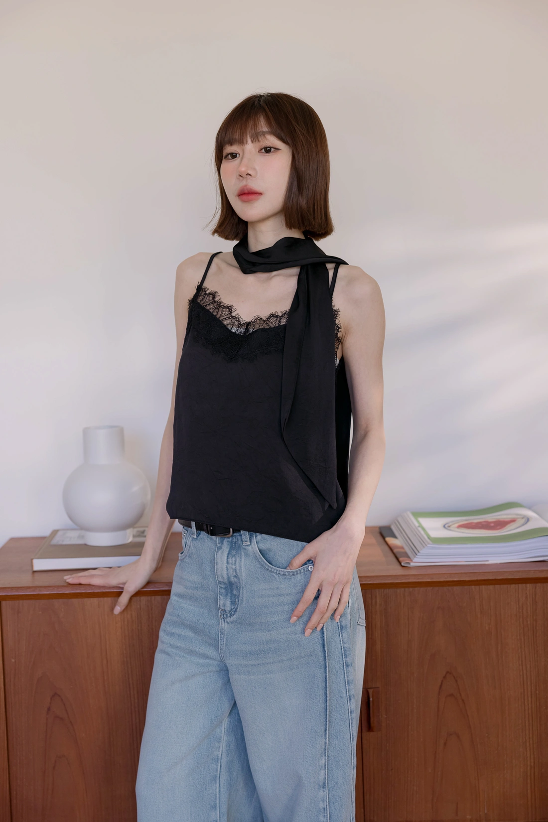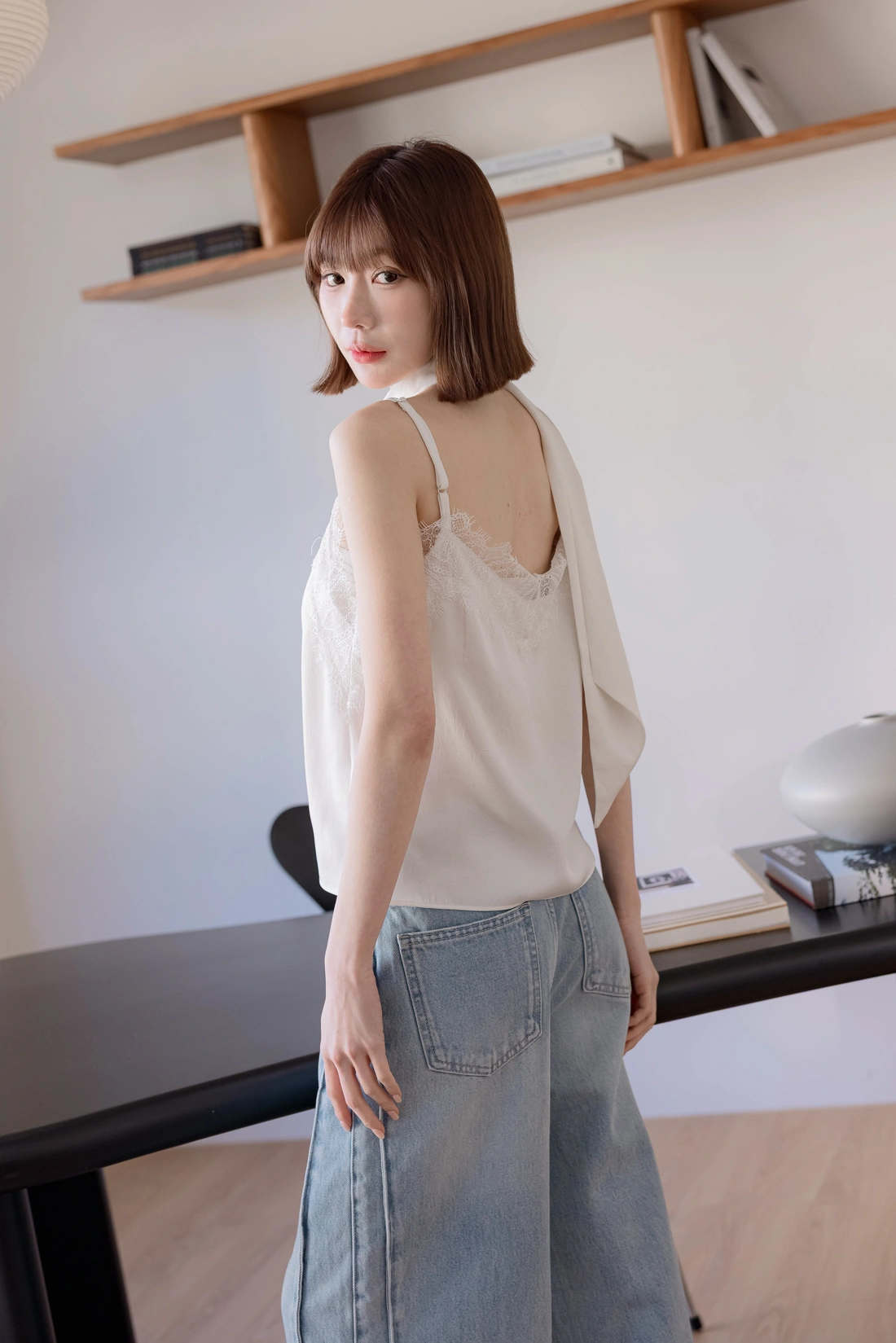 附絲巾可自由搭配/可調式肩帶/蕾絲親膚舒適