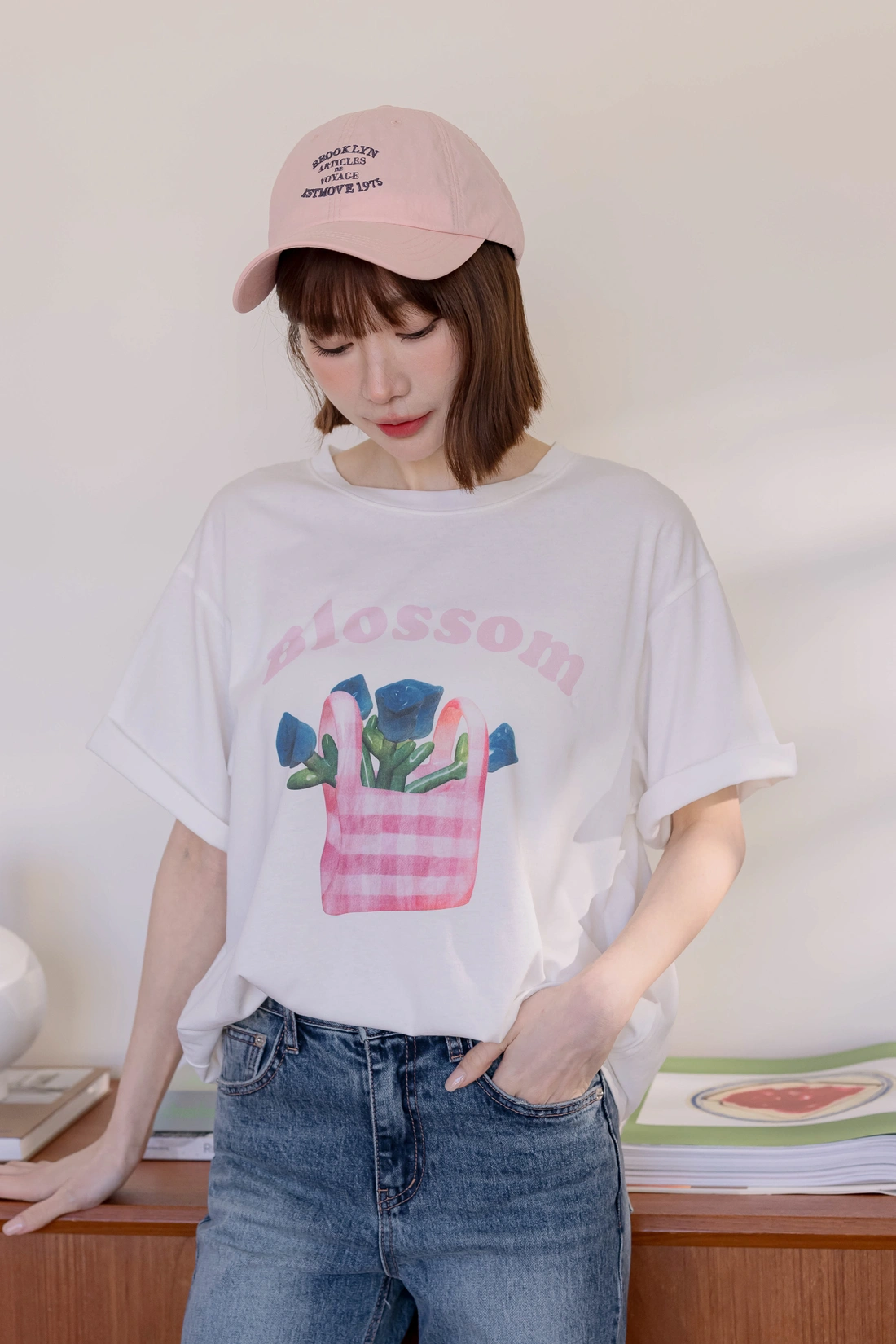 法式花朵刺繡/版型較寬鬆舒適/各身型皆可穿