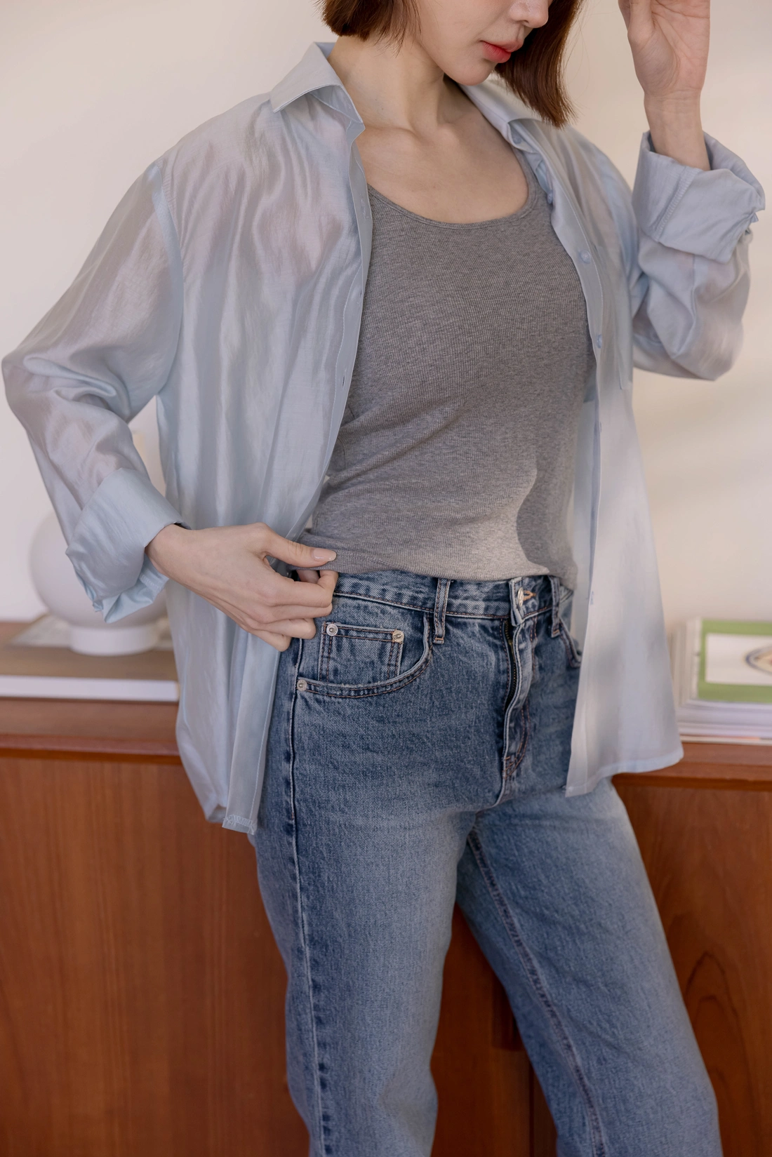 正韓製 微透感天絲兩穿襯衫
