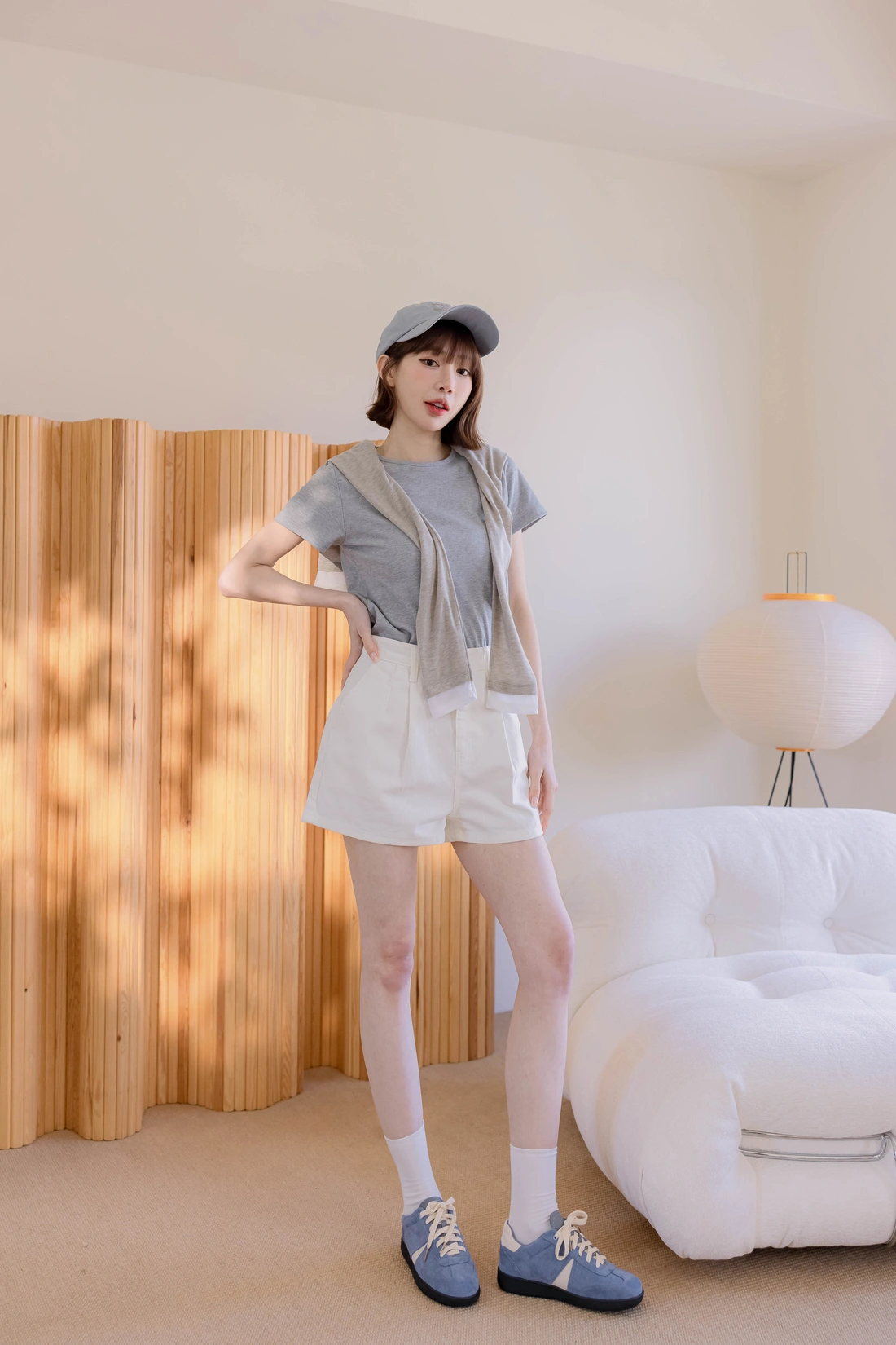 • 正韓製 前打摺A字顯瘦牛仔短褲