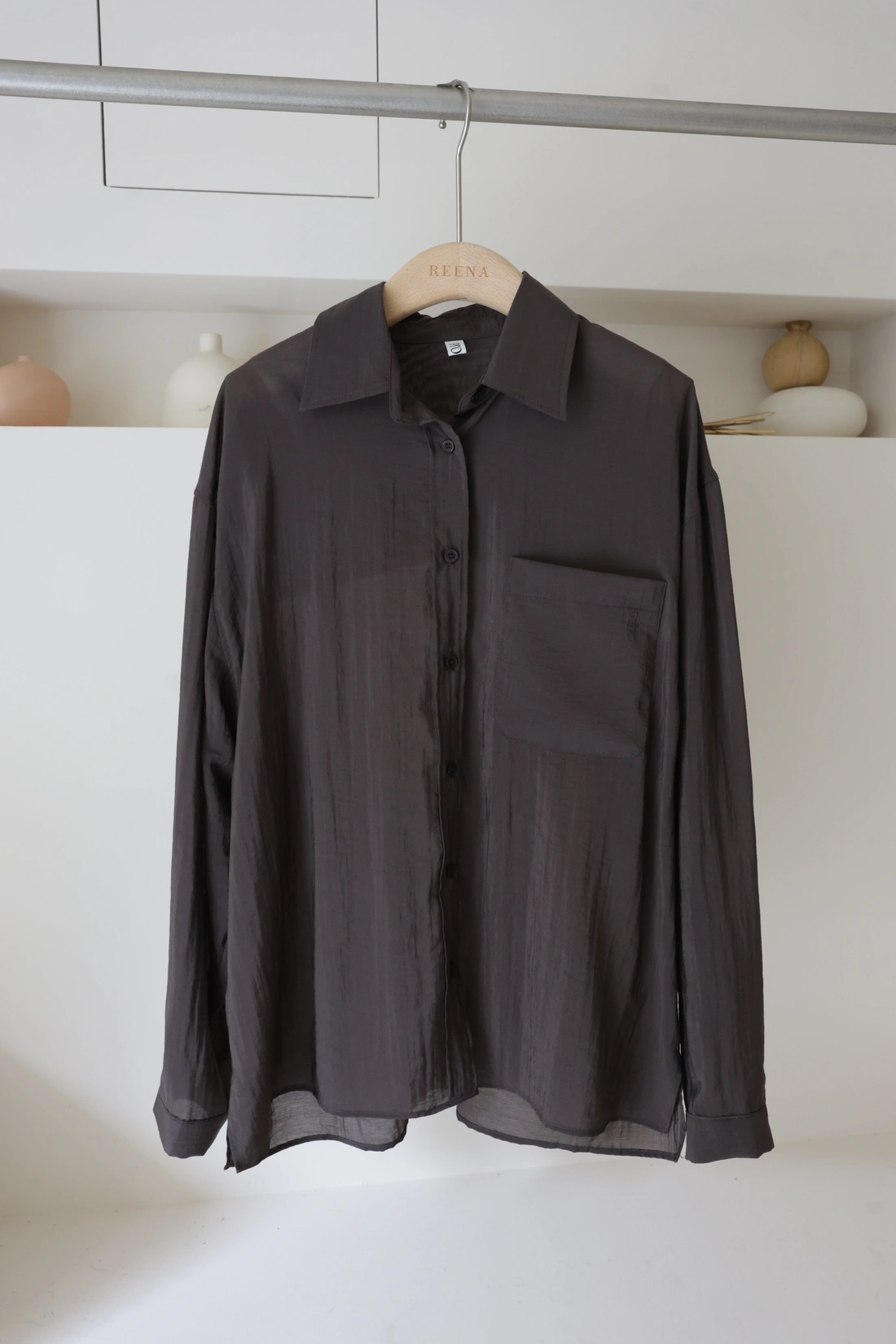 背面雙打褶/跟色釦質感UP/布料本身帶有皺感