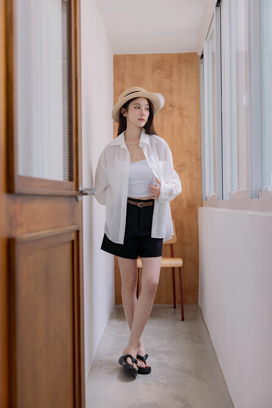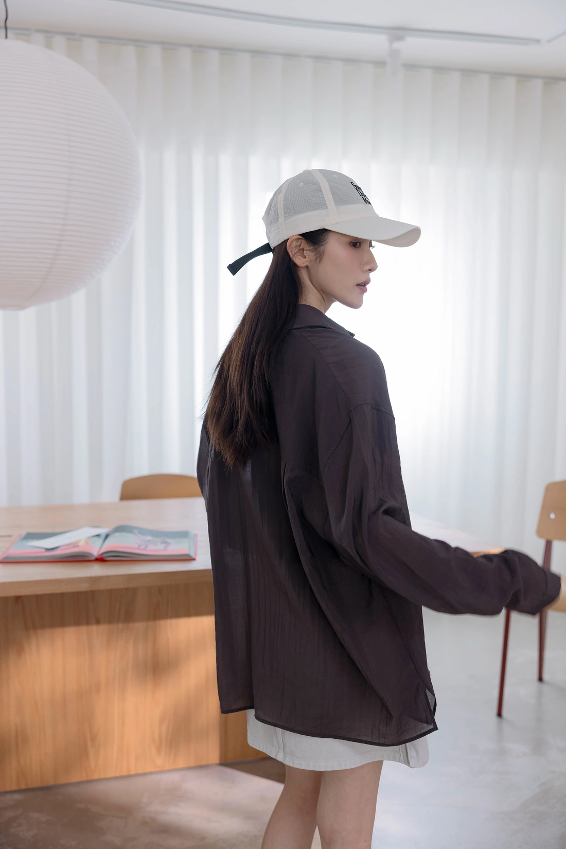 背面雙打褶/跟色釦質感UP/布料本身帶有皺感