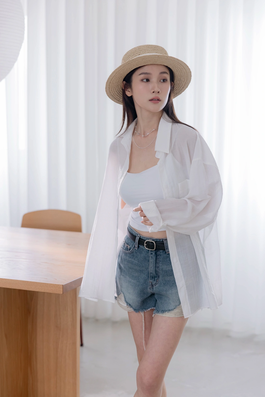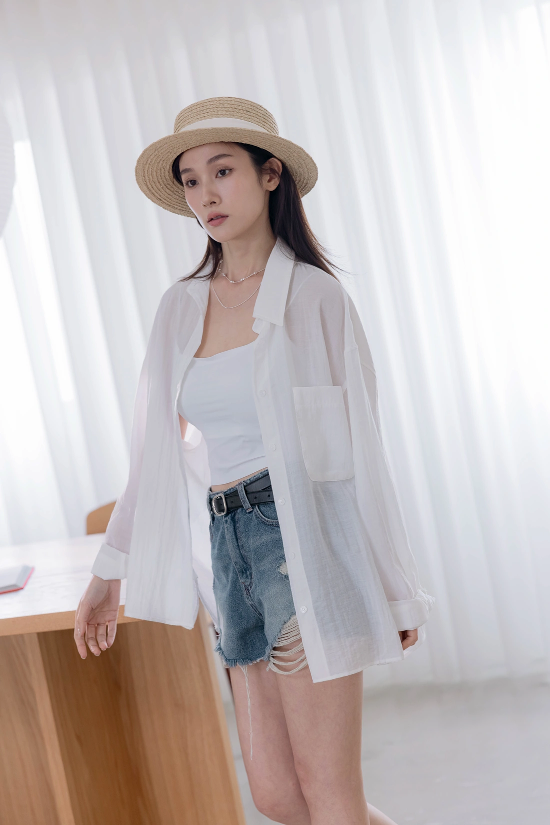 超親膚柔軟布料/微微透感/造型單口袋