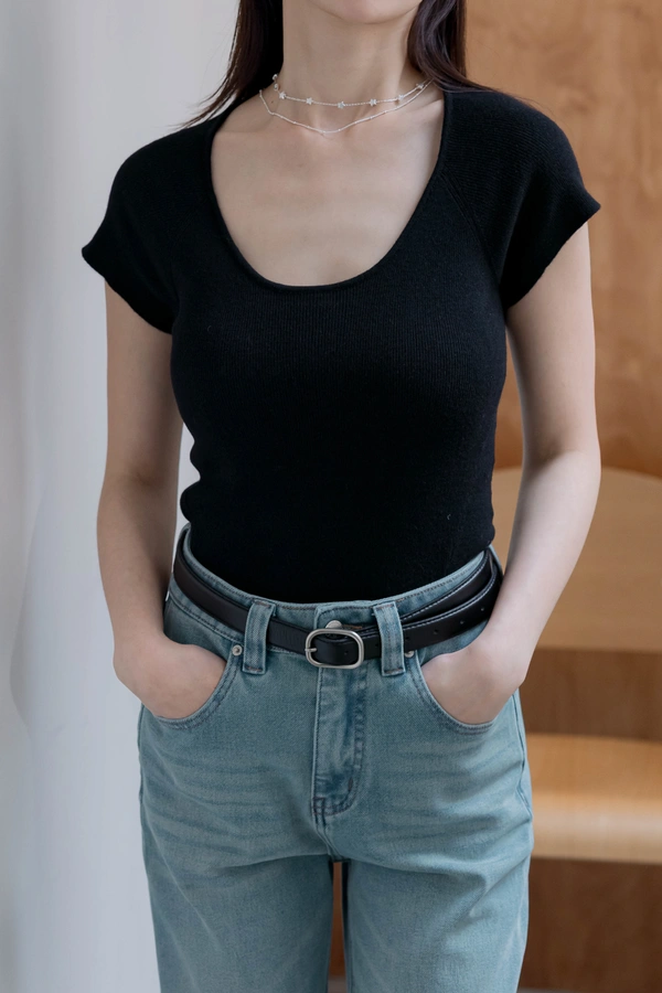 正韓製 修身羅紋包袖針織衫