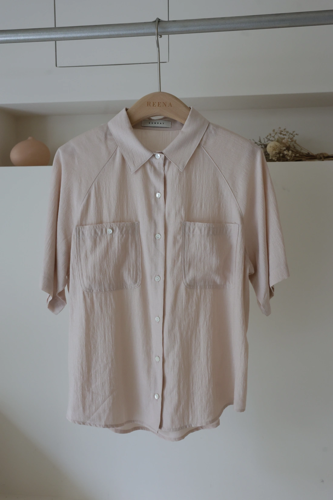 淡櫻花粉、基礎白/布料本身微皺感 易整燙