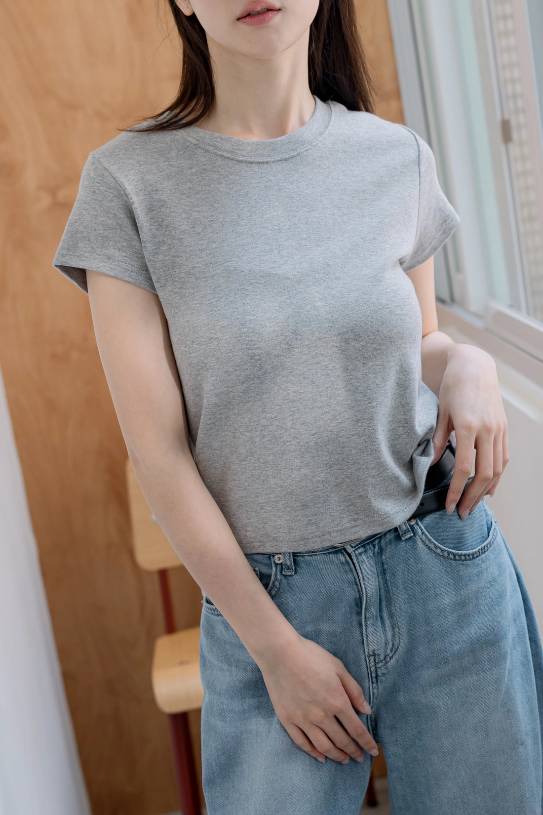正韓製 質感修身小版素T(背刺繡)