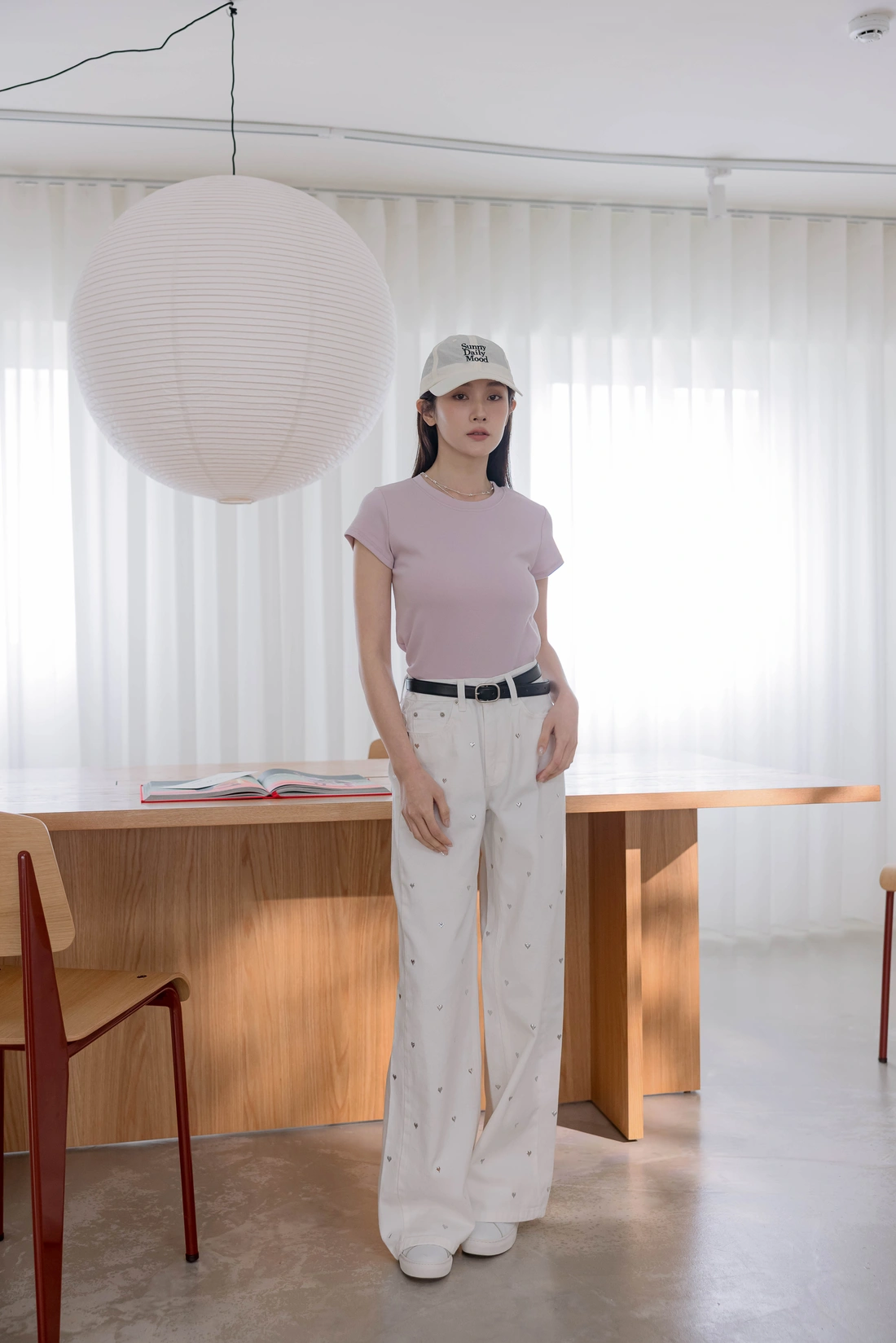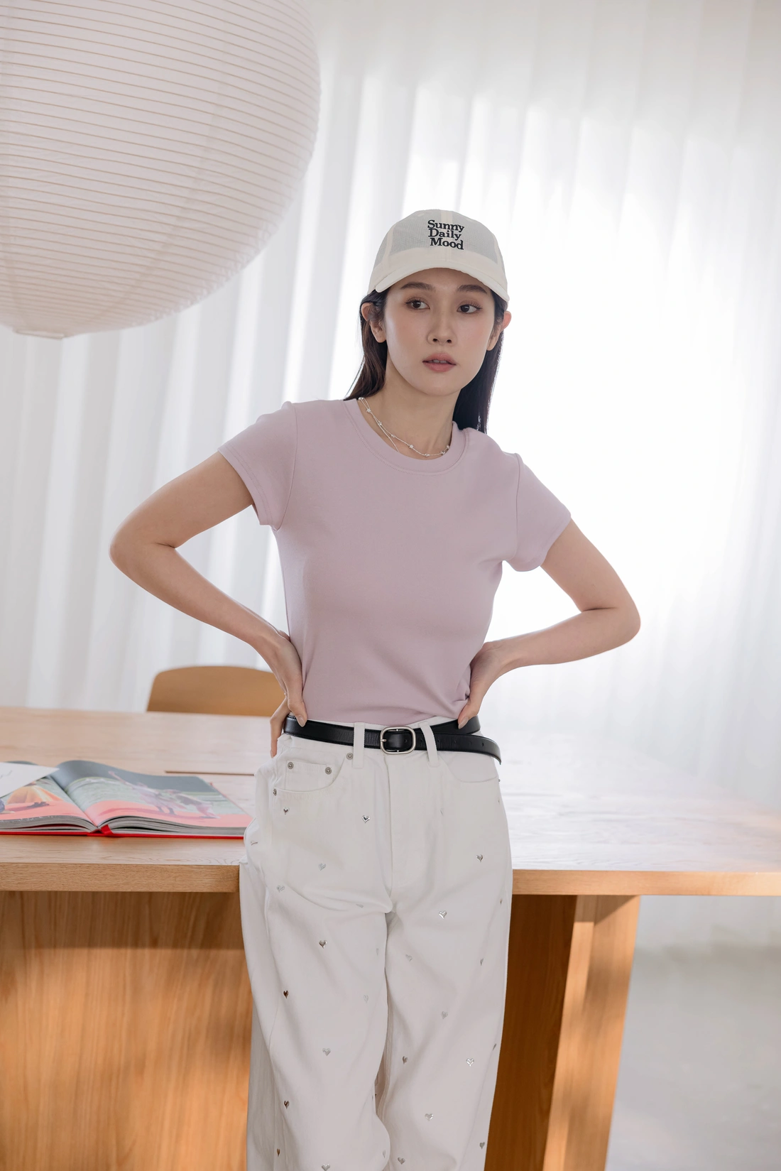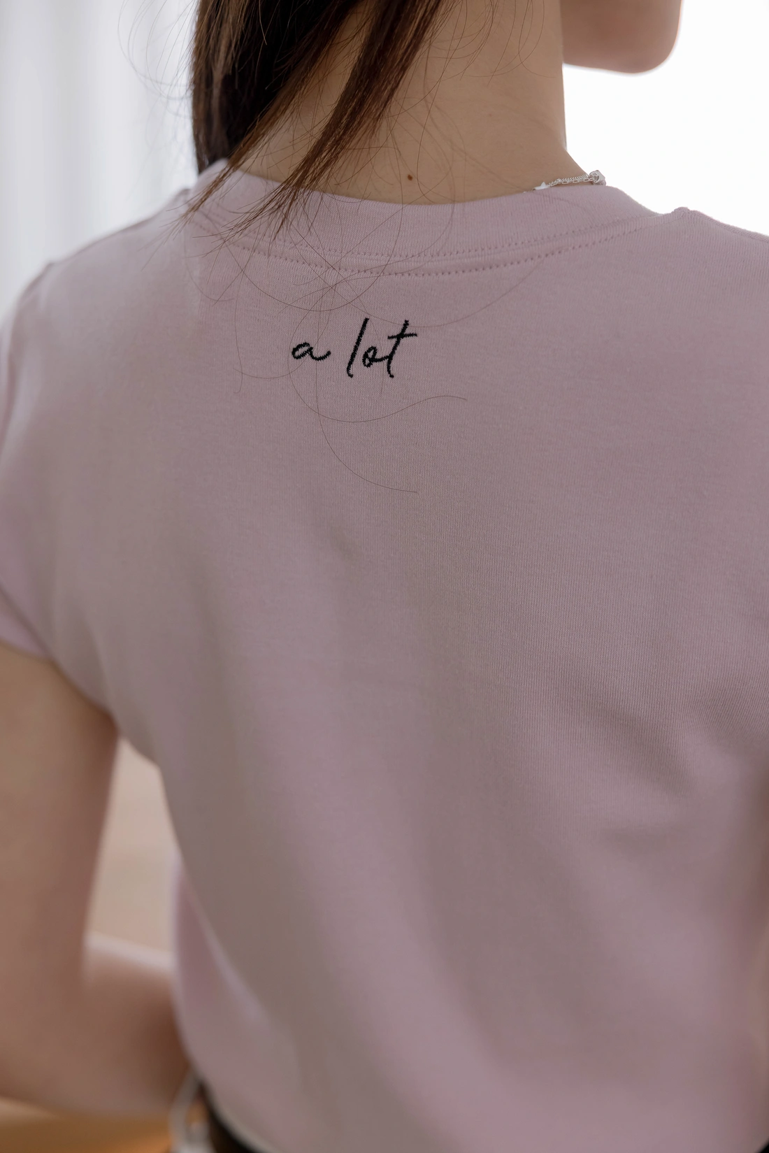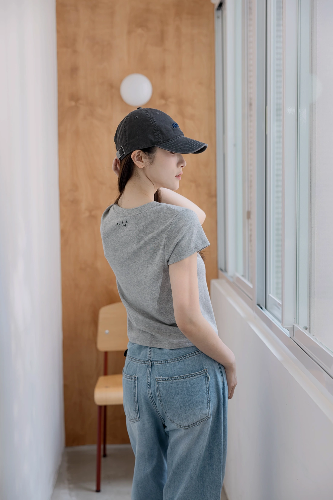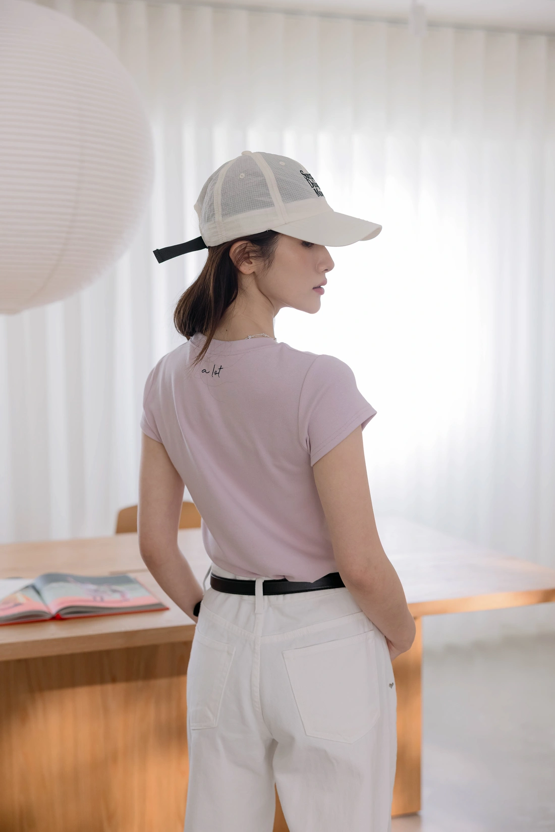 背面質感英文字樣刺繡/兩分袖修飾手臂線條