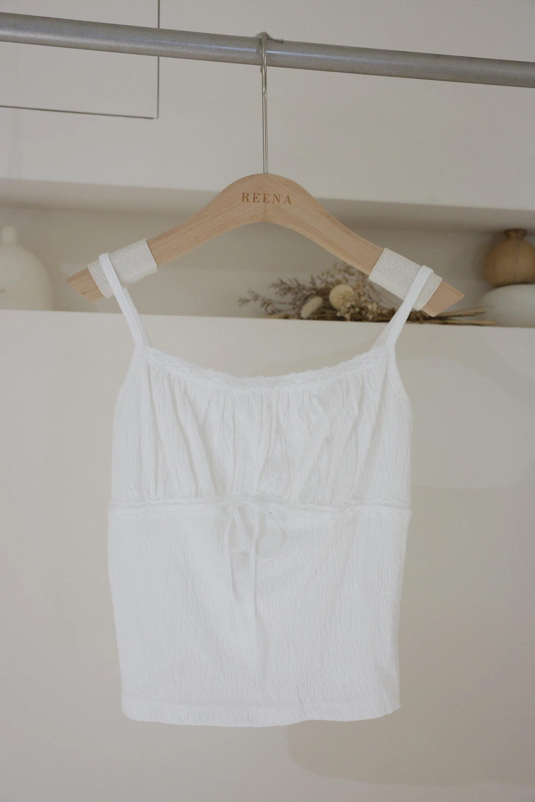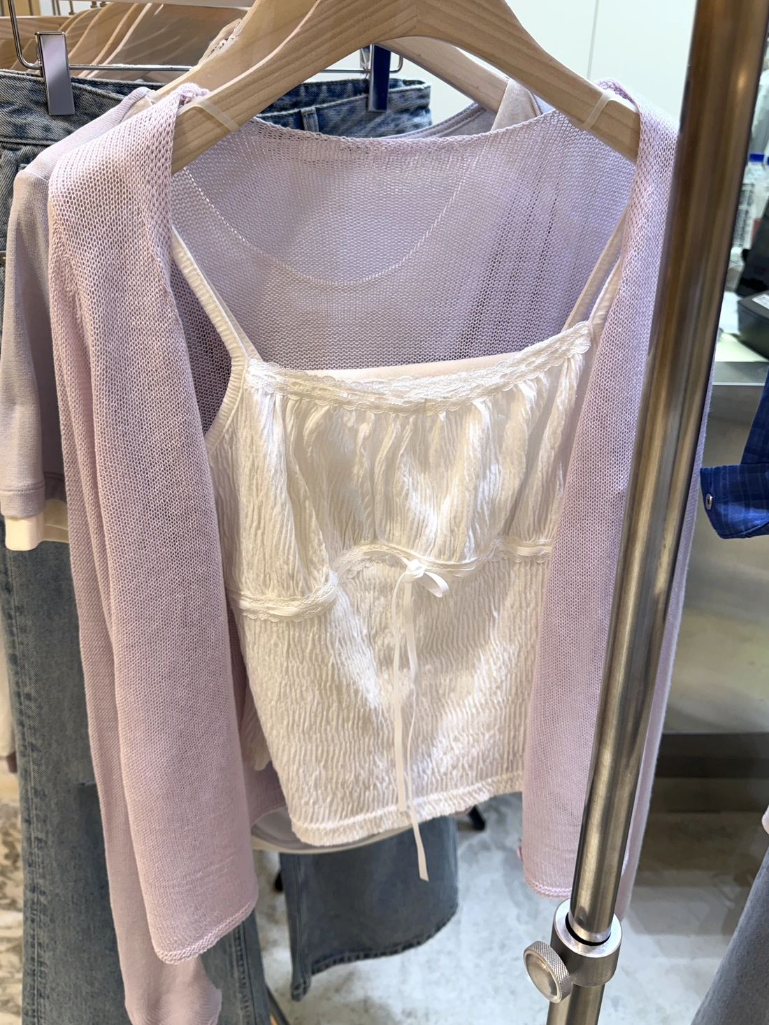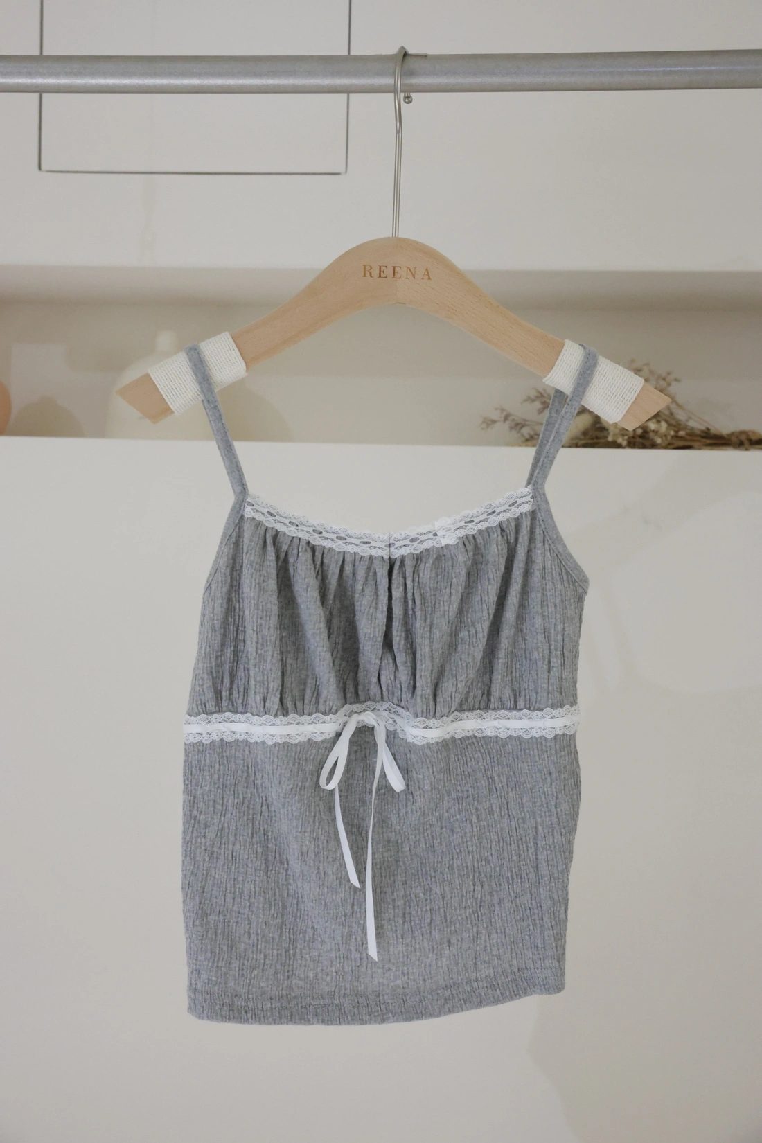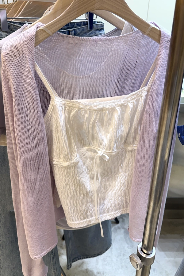布料本身皺感可愛感加分/正面拼接花邊蝴蝶結設計