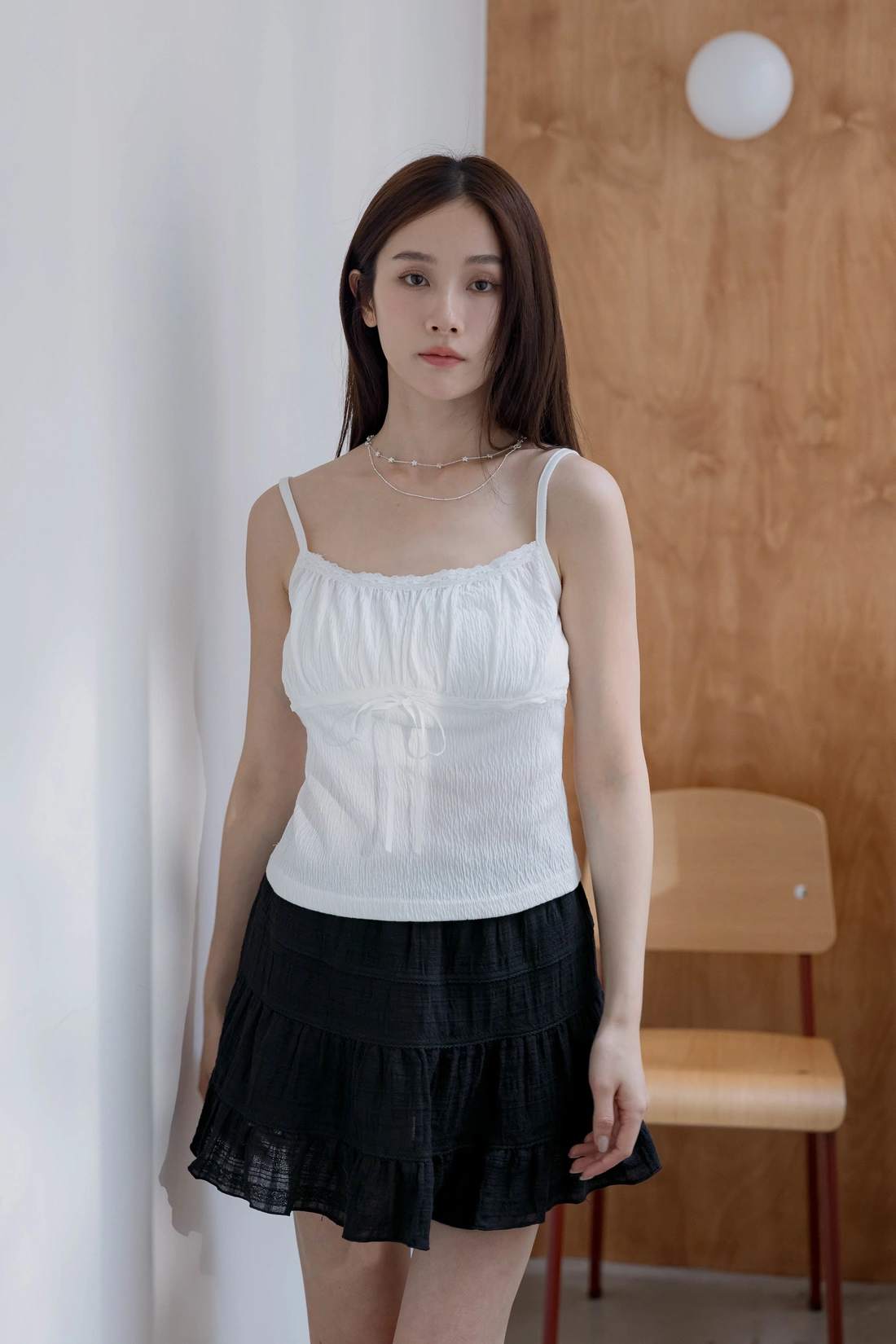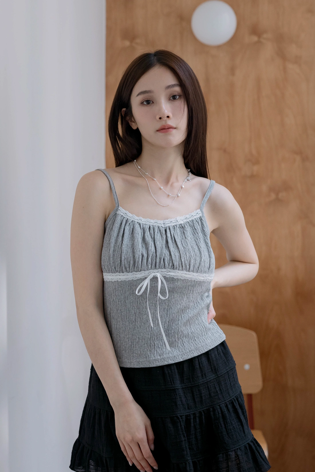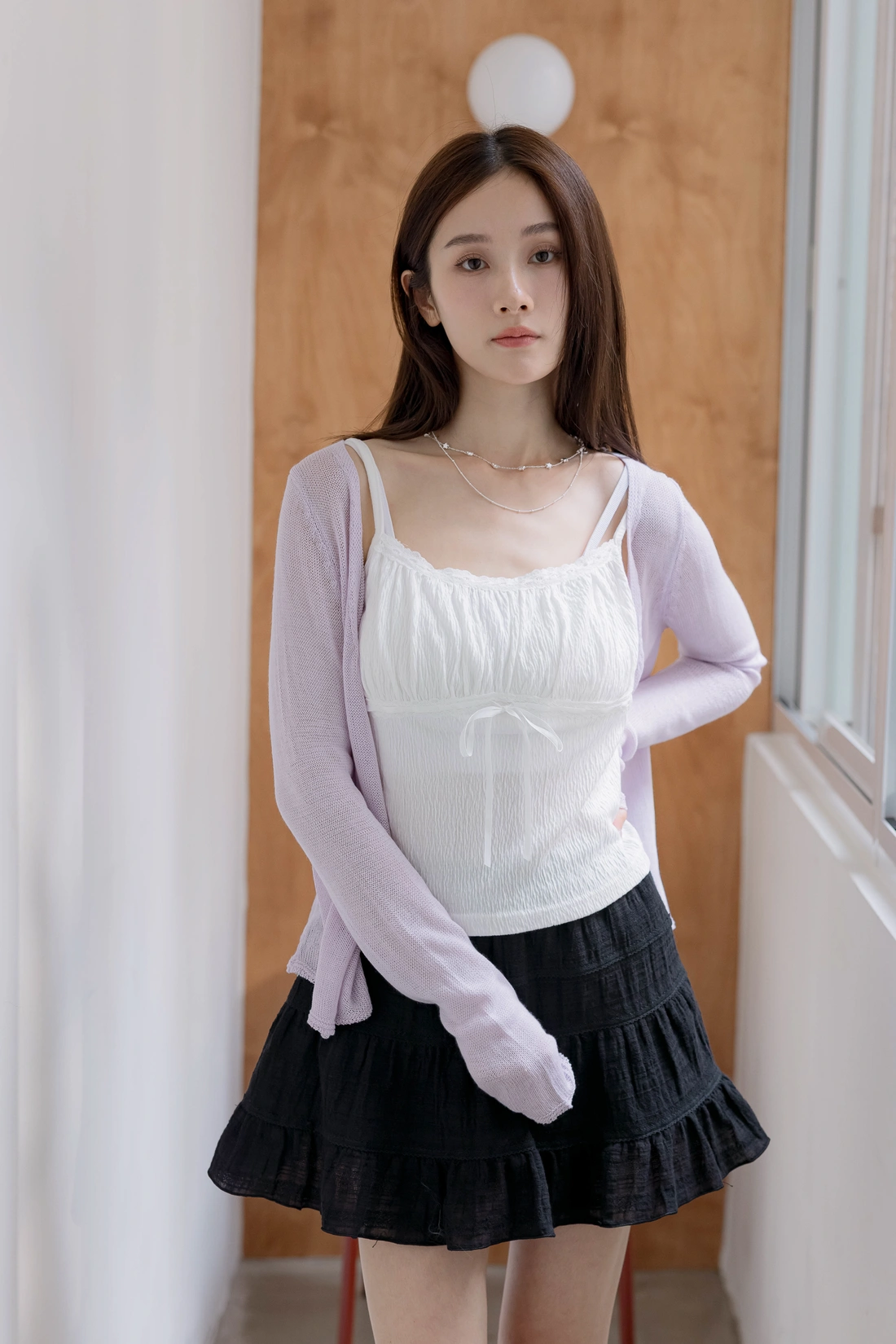 布料本身皺感可愛感加分/正面拼接花邊蝴蝶結設計
