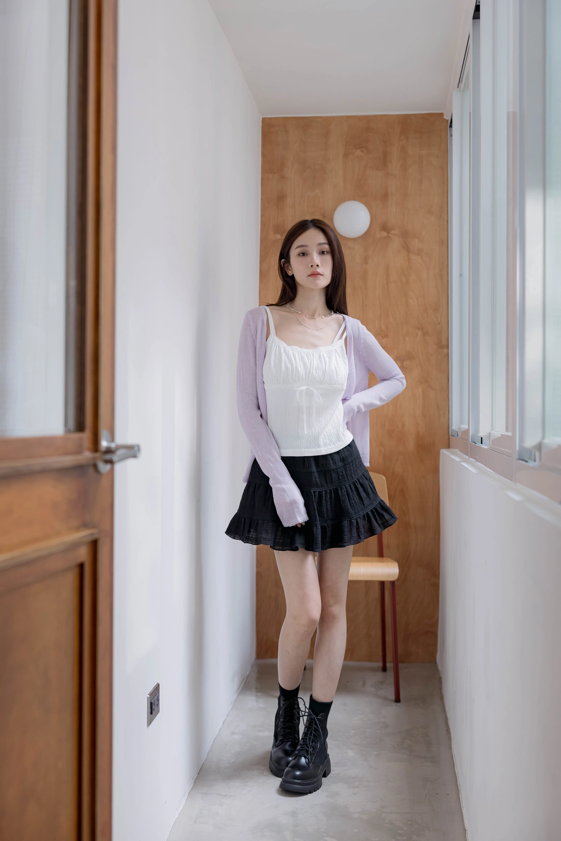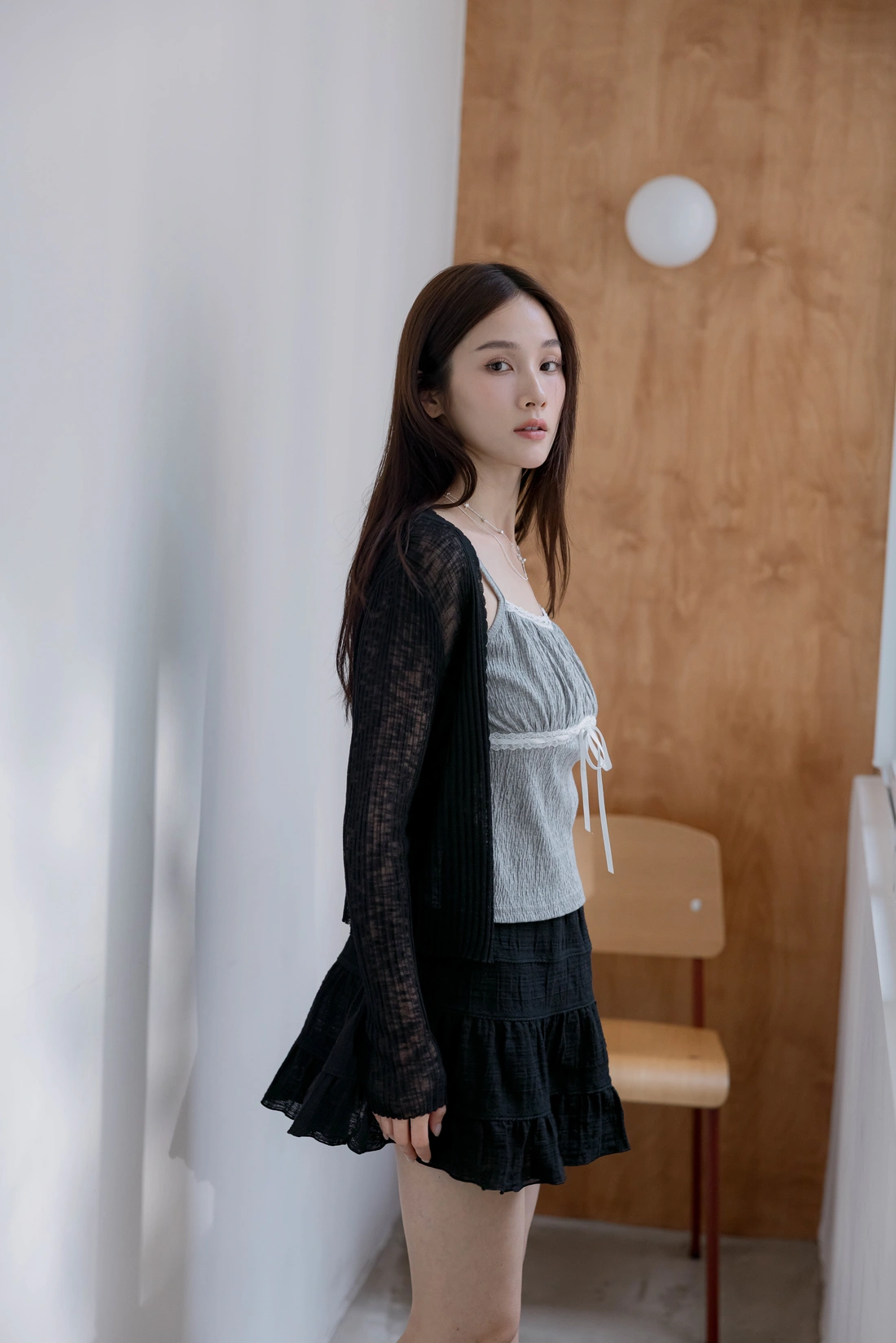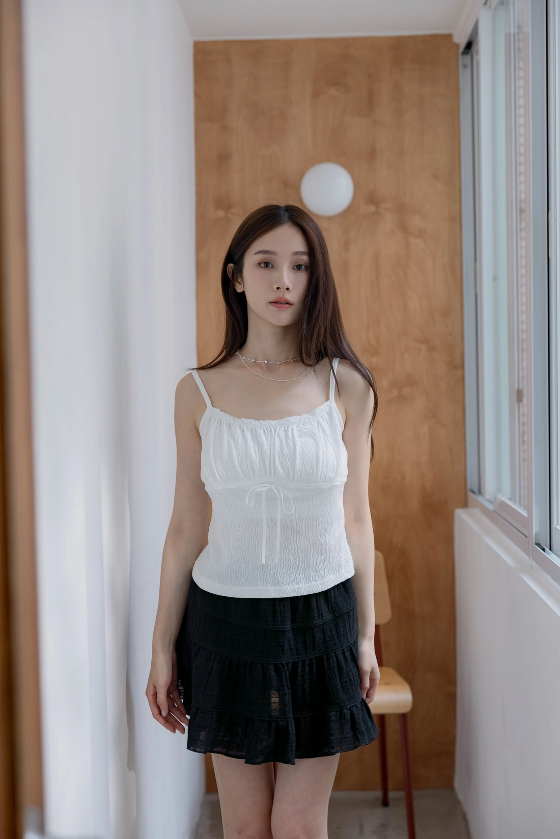 布料本身皺感可愛感加分/正面拼接花邊蝴蝶結設計