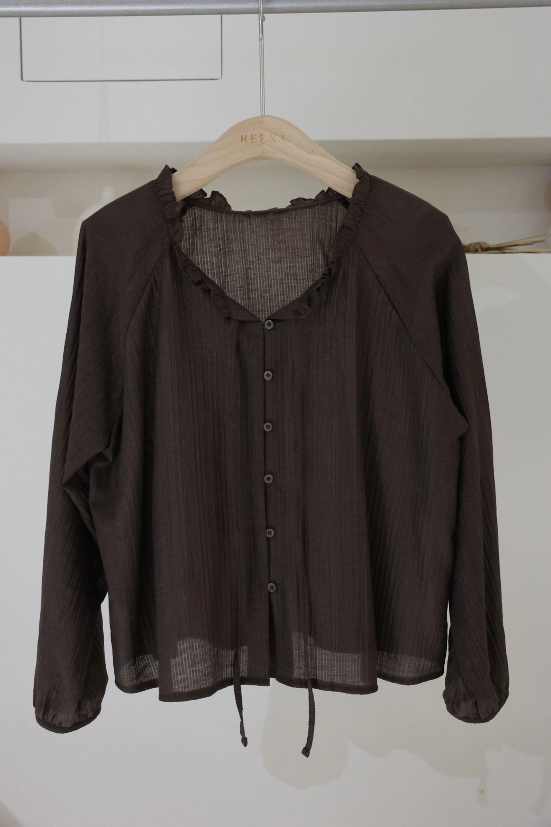 綁結排釦設計/壓紋布料自帶微透感
