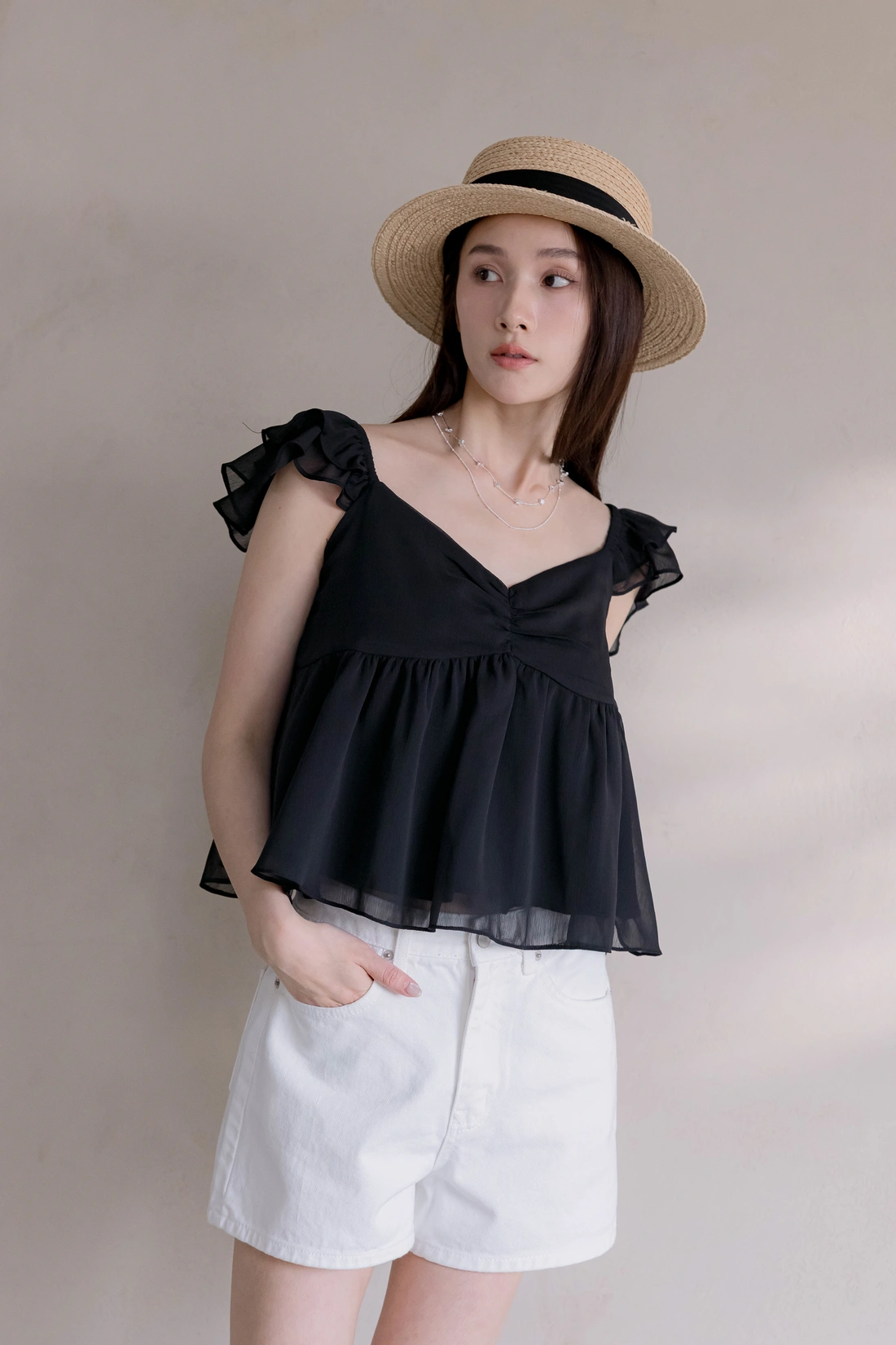 甜美夢幻公主袖上衣/胸前抓皺/側拉鍊穿脫方便