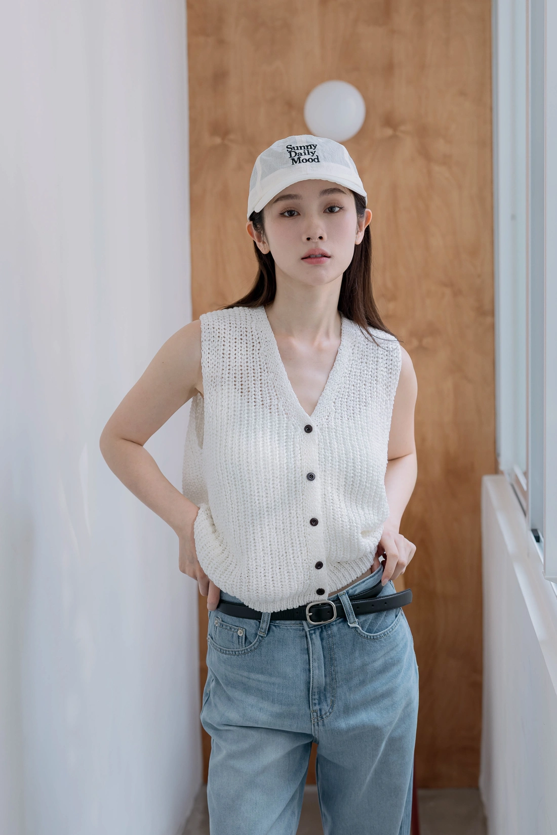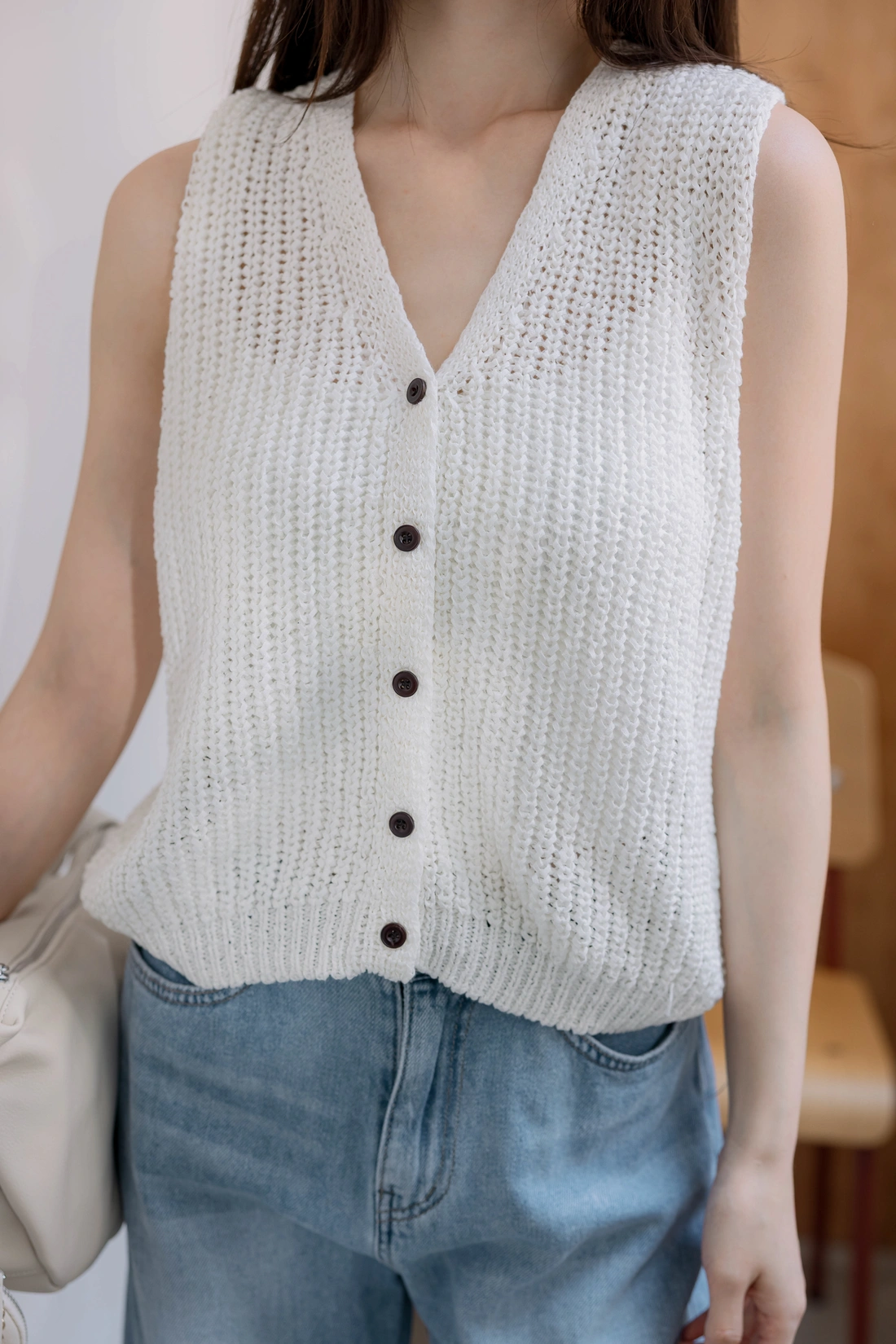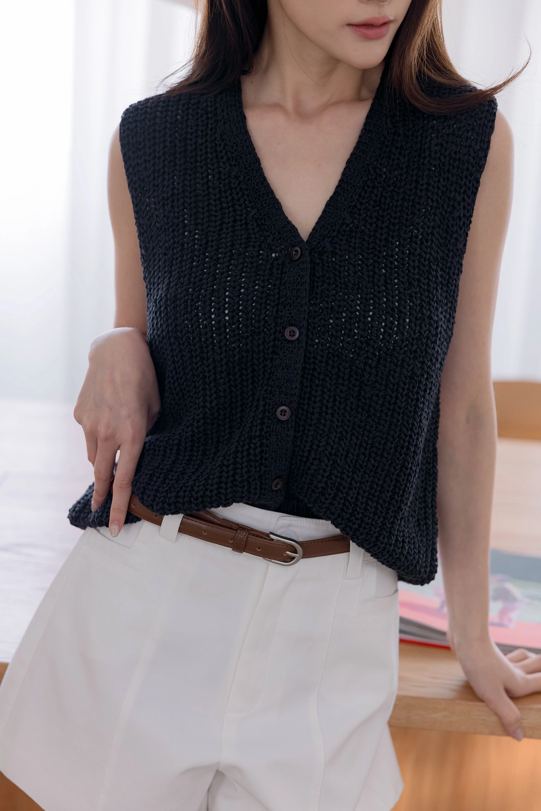 正韓製 時尚排釦鉤織背心