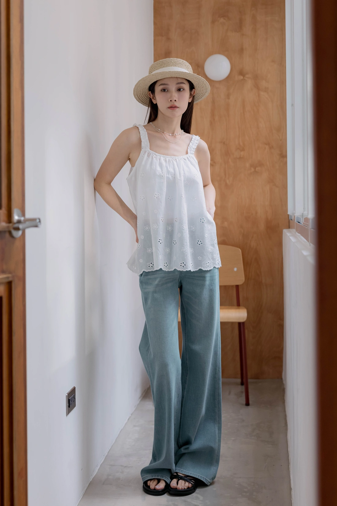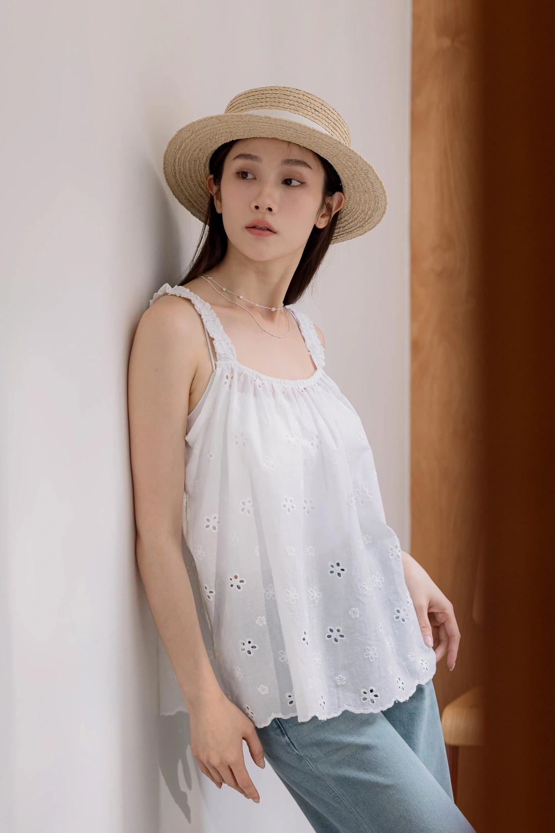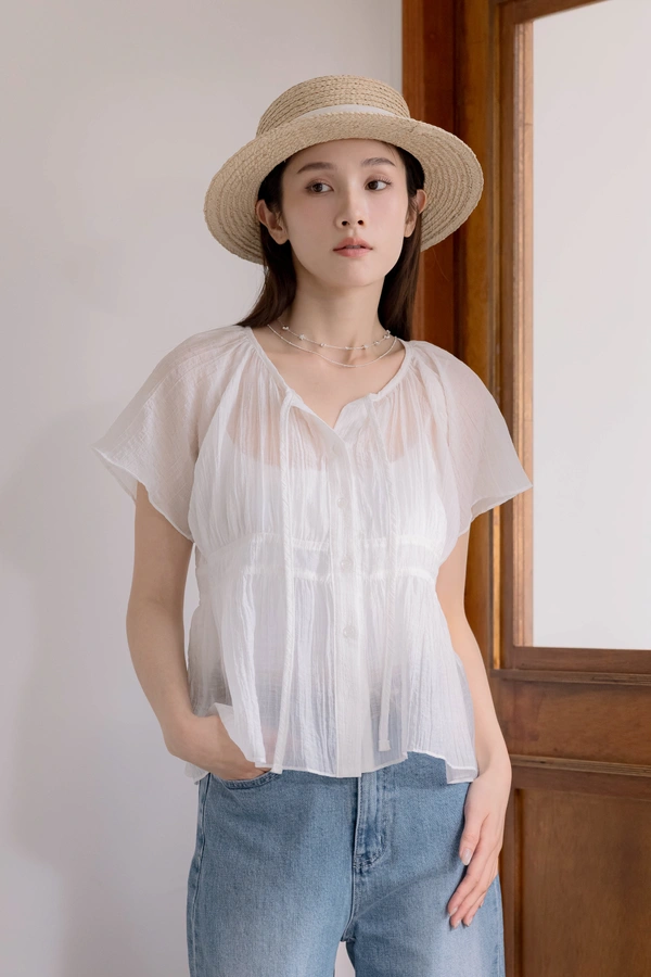 浪漫簍空提花設計/彈性鬆緊肩帶/清透感穿搭