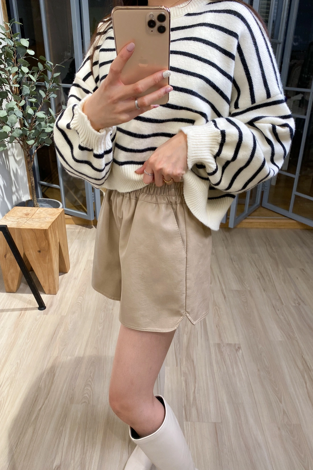 正韓製 百搭開衩皮褲/4色