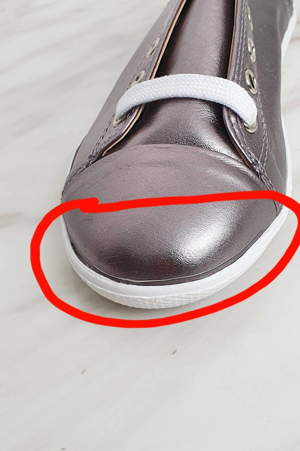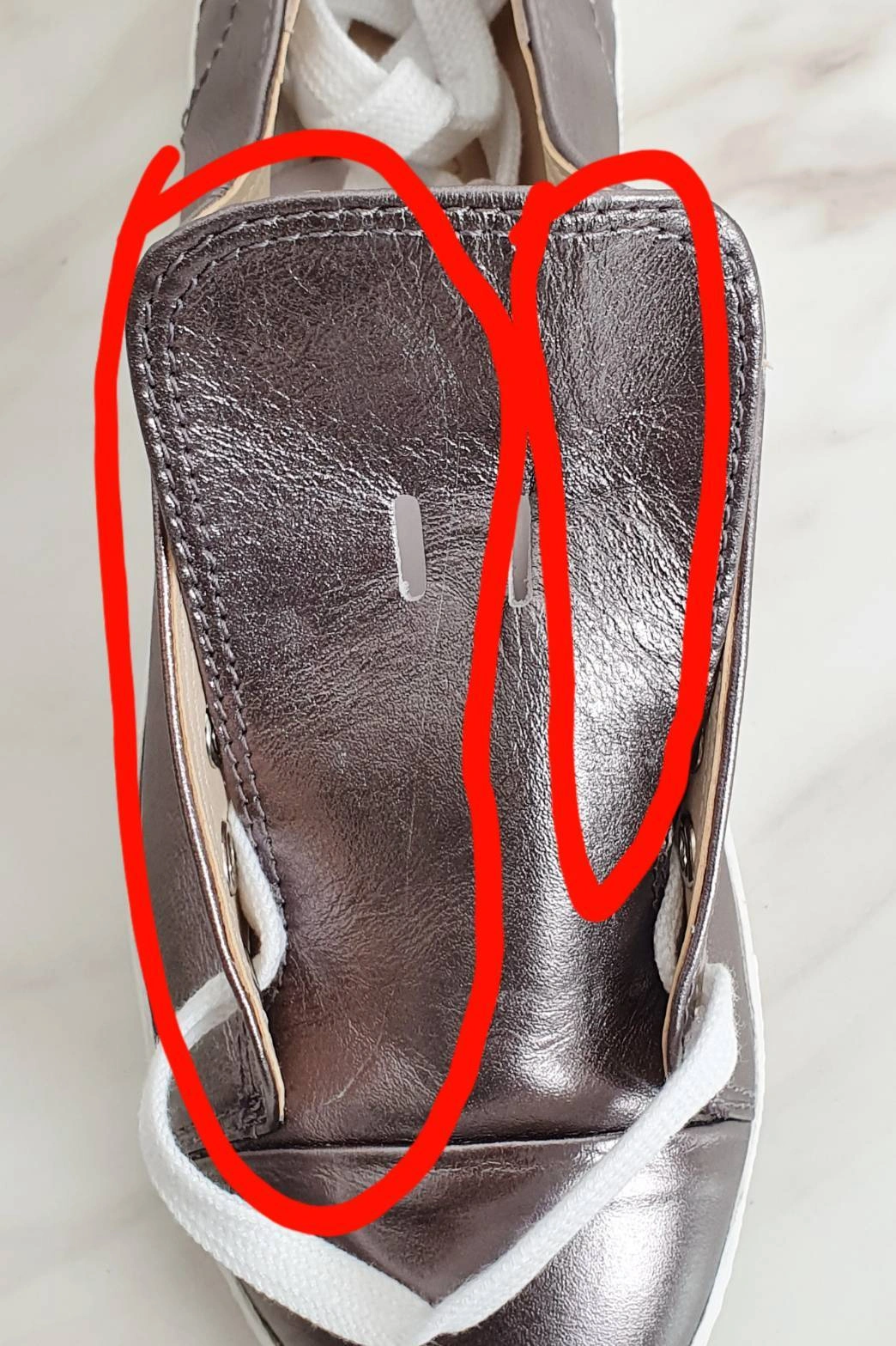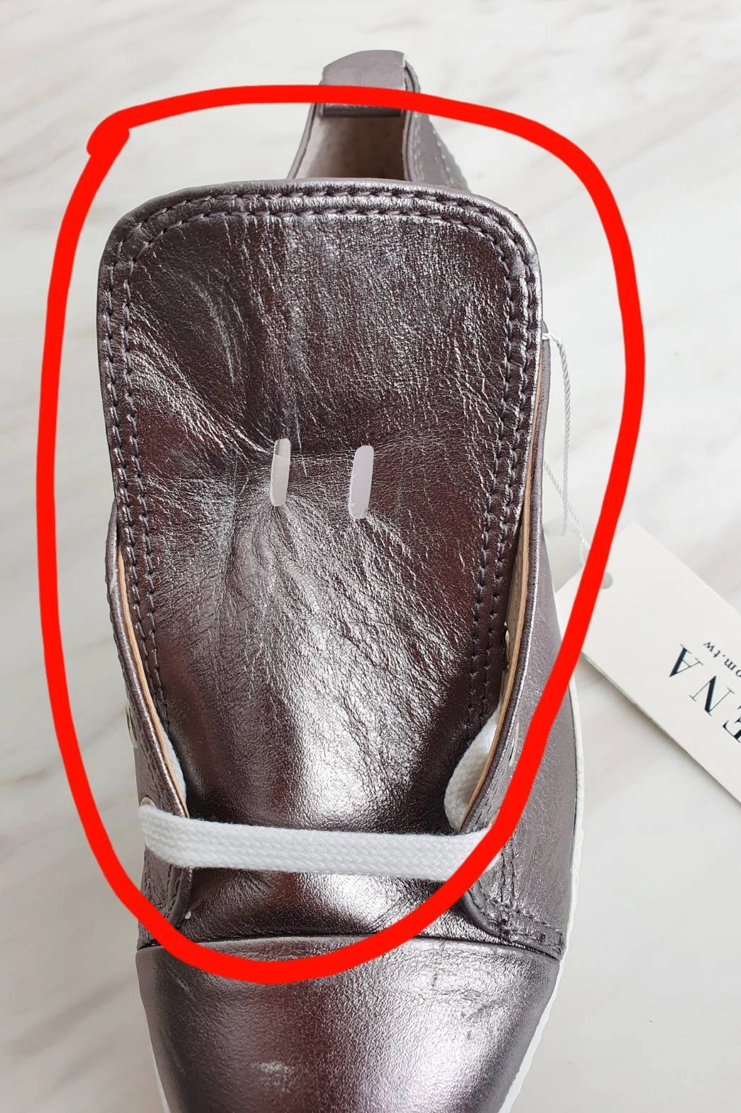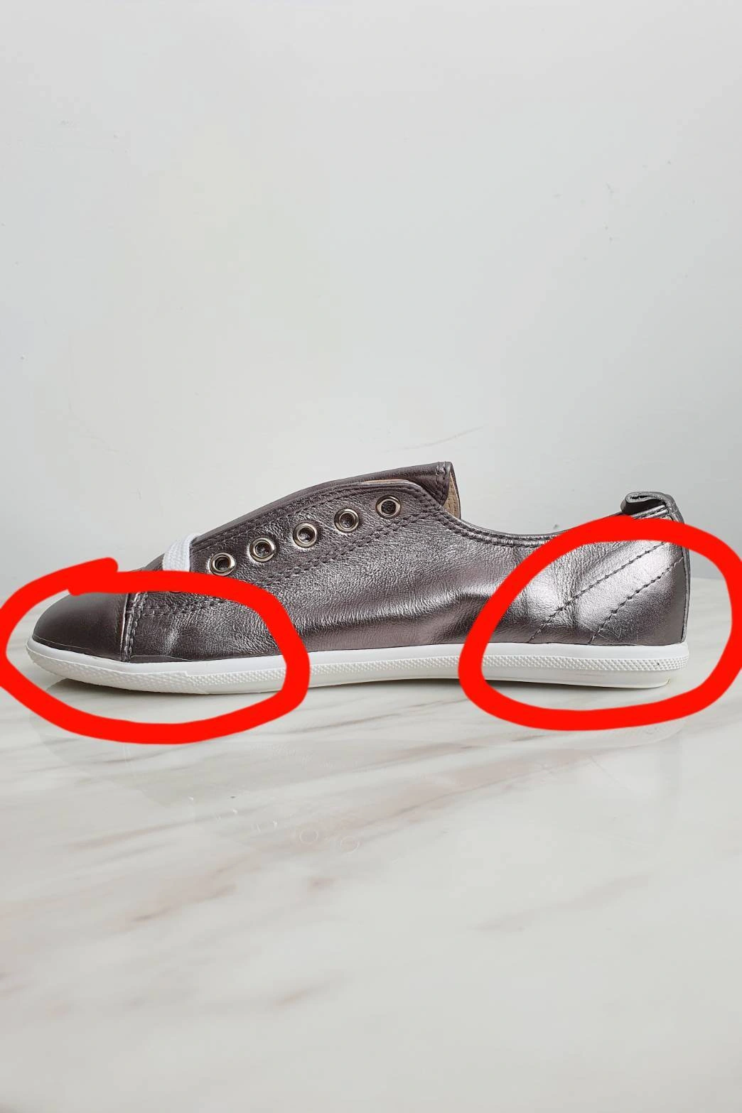 此件為韓國全新品到貨檢查出瑕疵為左右腳多處鞋底接縫處皮裂,多處掉色,