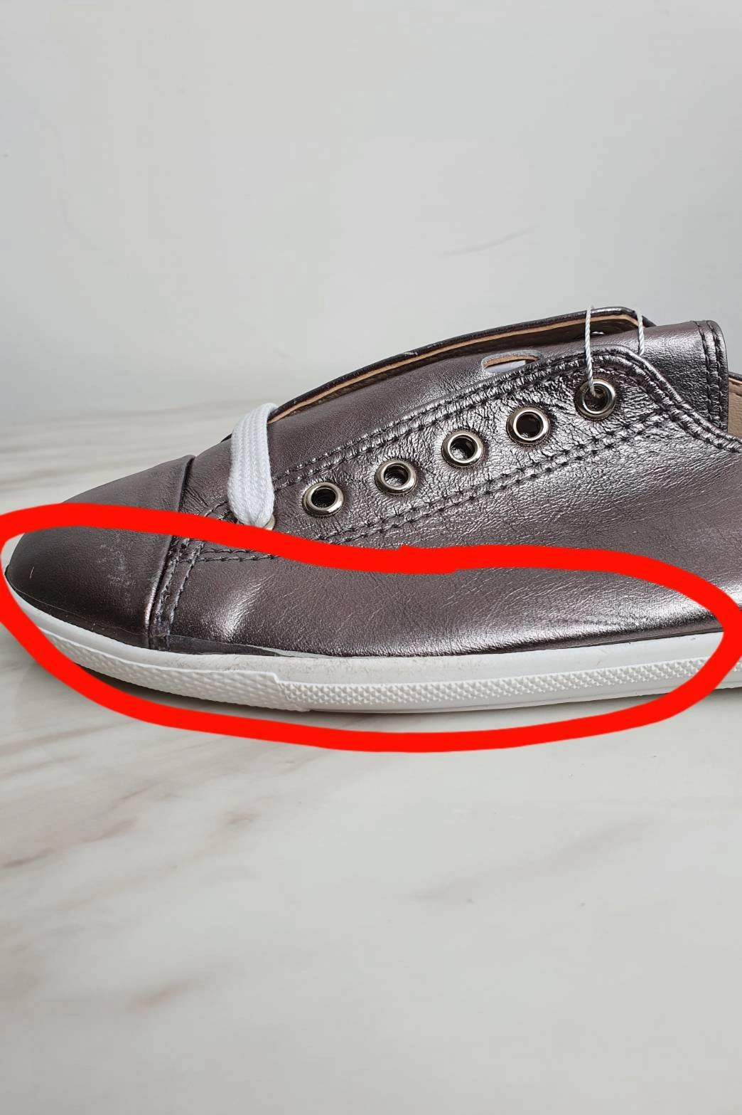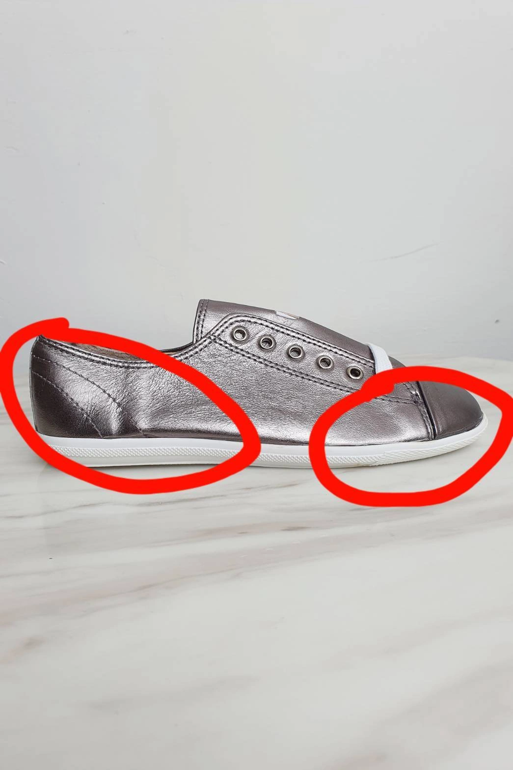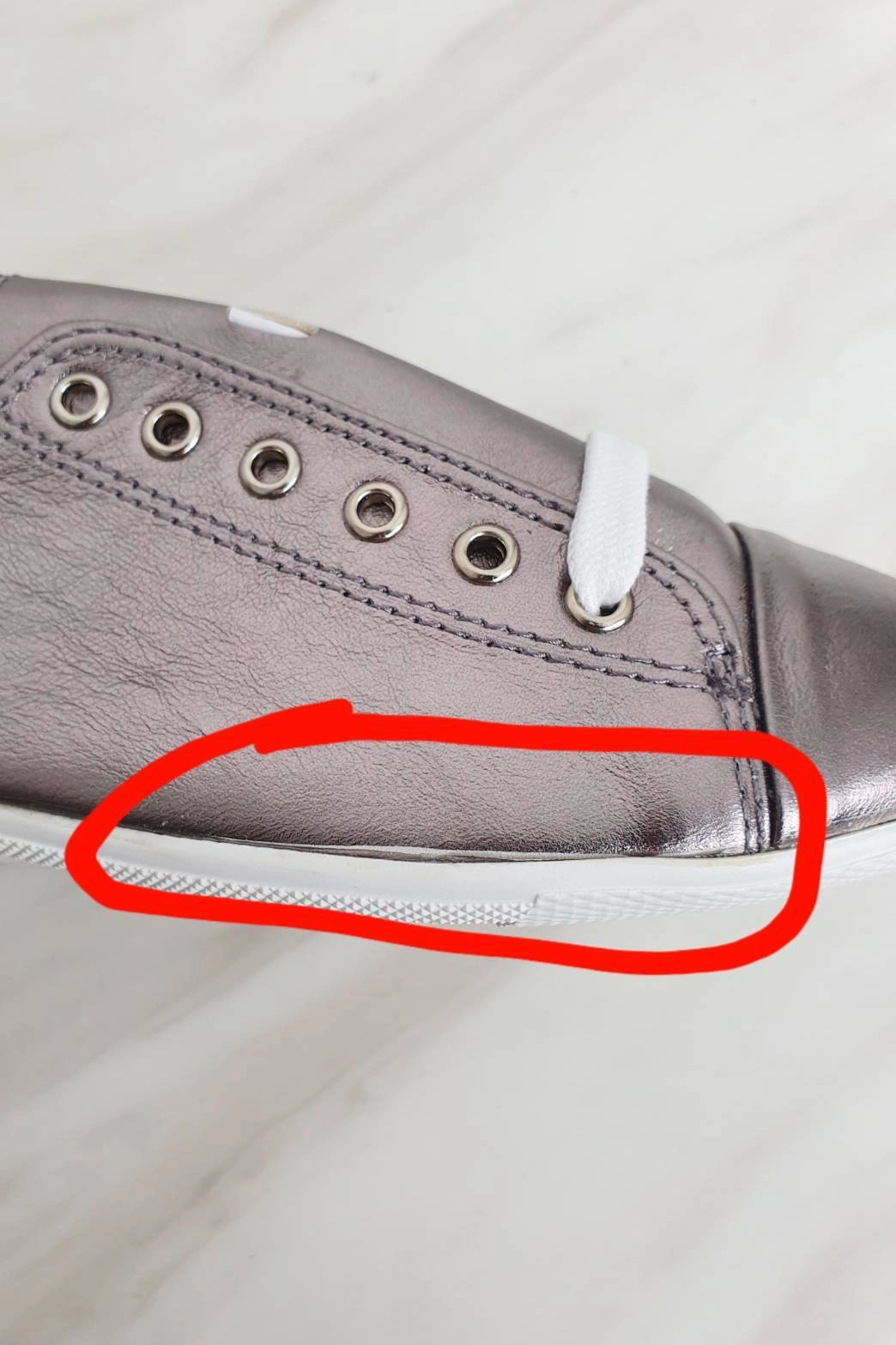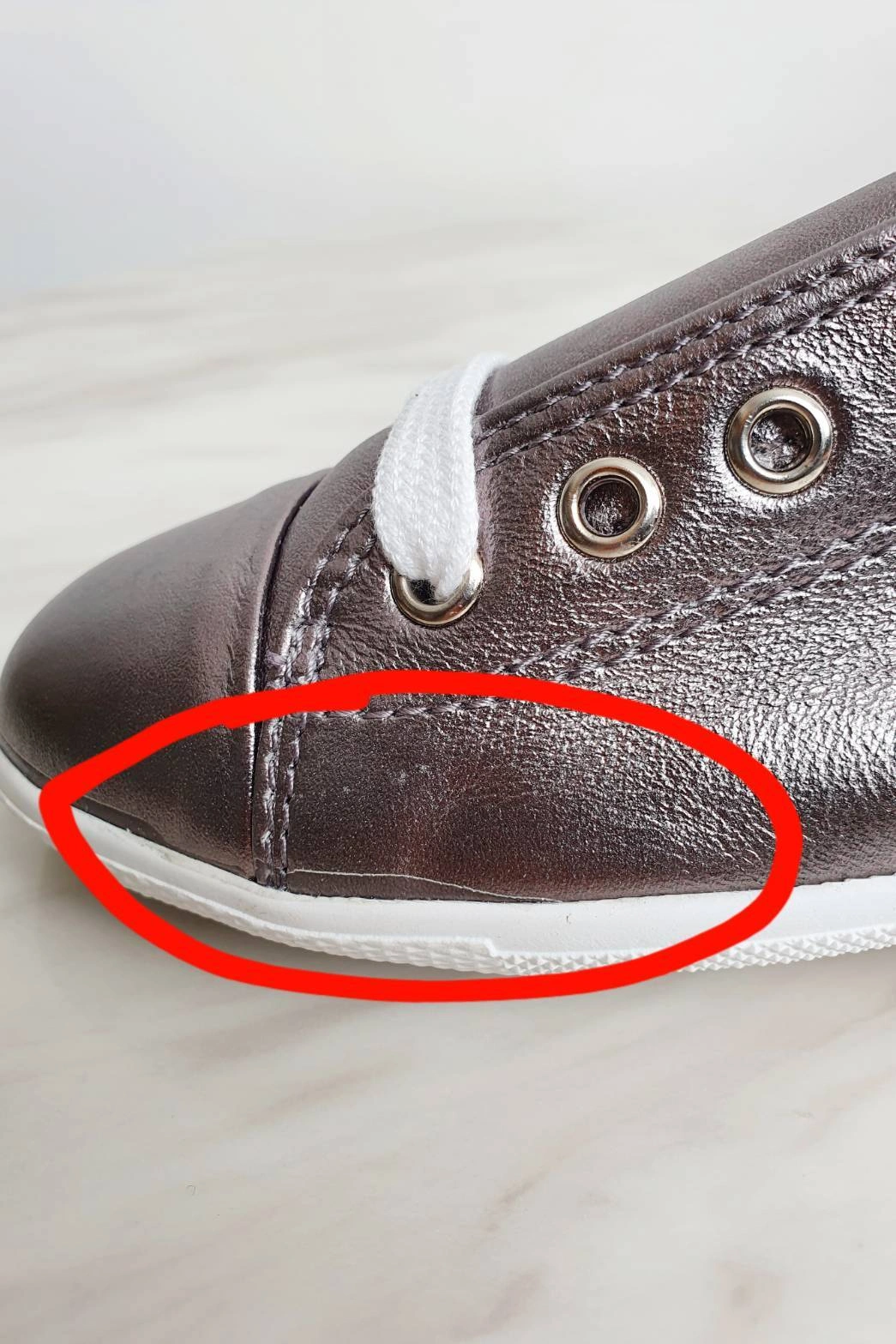 此件為韓國全新品到貨檢查出瑕疵為左右腳多處鞋底接縫處皮裂,多處掉色,